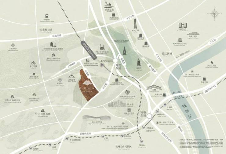 中海月陇云岚择址于杭州城西的稀缺生态板块,坐拥得天独厚的自然风光。项目紧邻风景秀丽的西山国家森林公园,远眺钱塘江蜿蜒流淌,近享绿意盎然的城市绿肺,空气质量优良,是城市中的一片静谧绿洲。同时,项目周边交通网络四通八达,快速接驳城市主干道及高速入口,轻松链接杭州各大商务区与核心商圈,实现工作与生活的无缝切换。