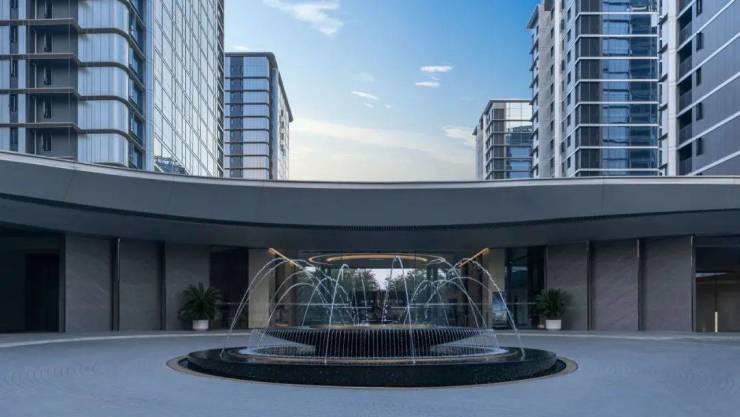 社区入口由银灰色铝板拼接搭配高档石砖打造而成,千万星级酒店式落客,《玉泉心屿》实景喷泉,由绿星大理石人工雕琢而成,喷涌的艺术水景点缀着温润的奢华。