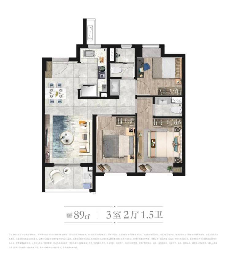 【B户型品鉴】约89平米的精致三房,两厅一卫半的设计,动静分区,空间利用恰到好处。观景阳台与客厅无缝对接,阳光与风景同享。主卧套房,同样配备独立卫浴与飘窗,尽享私密与惬意。南向双卧,宽敞明亮,让生活的每一刻都充满阳光与自由。