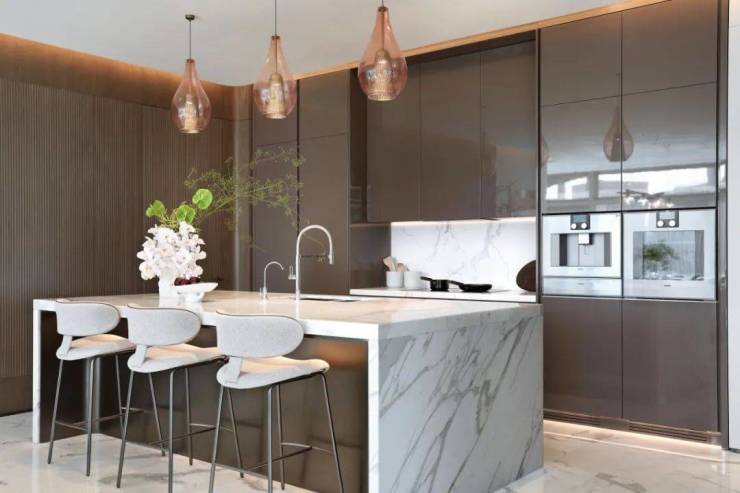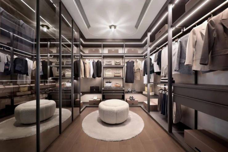 样板房蕴藏高级定制理念,从电梯厅与玄关创新一体化格局,到堪比六星级总统套房的主卧,皆是如此。尤其是主卧内嵌式衣帽间,装得下一个巴黎的当季时尚,搭配卫浴专属化妆台,每次出门都从容、优雅。