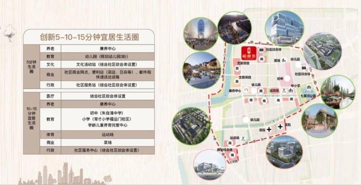 宝塔湾5-10-15分钟宜居生活圈,涵盖医疗、教育、养老、体育、商业、行政多个行业,从3维度、7大项、18子项的规划落实宝塔湾的片区更新改造。