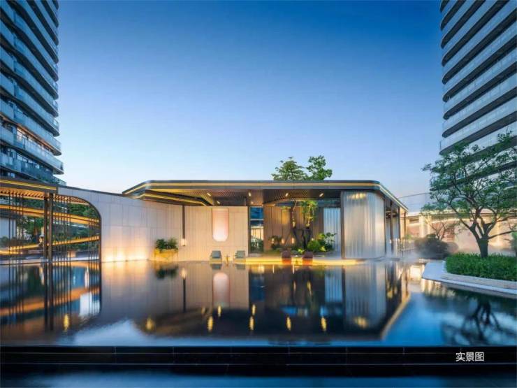 沿着风雨连廊穿过景观园区,不经意间遇见汀水会客厅,叠水石景、游鱼锦鲤,让人在游览中陷入片刻的微醺。就在这连廊中轴水月观景区,可直接观赏整个园区风景,整个景观设计汲取莫比乌斯环“∞”无限延伸的灵感,以“无尽之境”为设计理念,打破传统设计的“界限”,你可以沿着星月草坪、风雨连廊循环往复、移步换景,让风景生生不息。