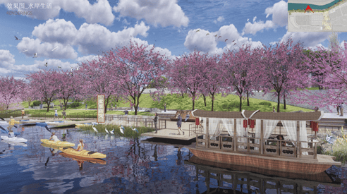 🔹秦淮河风光带最美1公里,是未来最具渔舟文化特色的滨水景观带,布局码头、廊亭、空外健身、林下广场等景观节点。