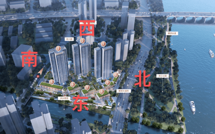住宅全部2梯4户设计,基本5楼以上可以无遮挡望江。