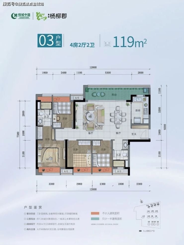 在售产品:建面约101-119㎡三四房