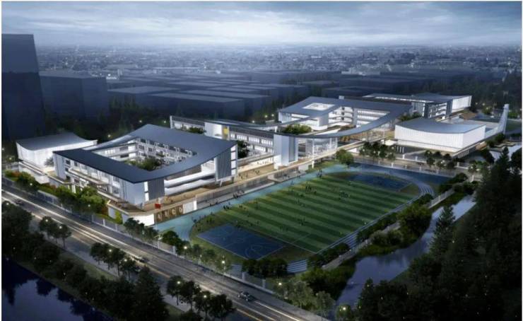 项目西侧在建的星灿九年一贯制学校,总用地面积64000㎡,总建筑面积约为99000㎡;办学规模63班,其中星灿路以北为小学42班,星灿路以南为中学21班。