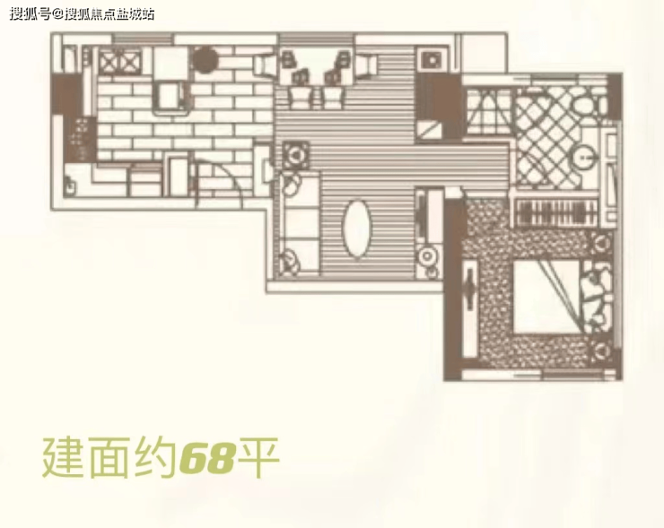 建面约68㎡1房户型▼