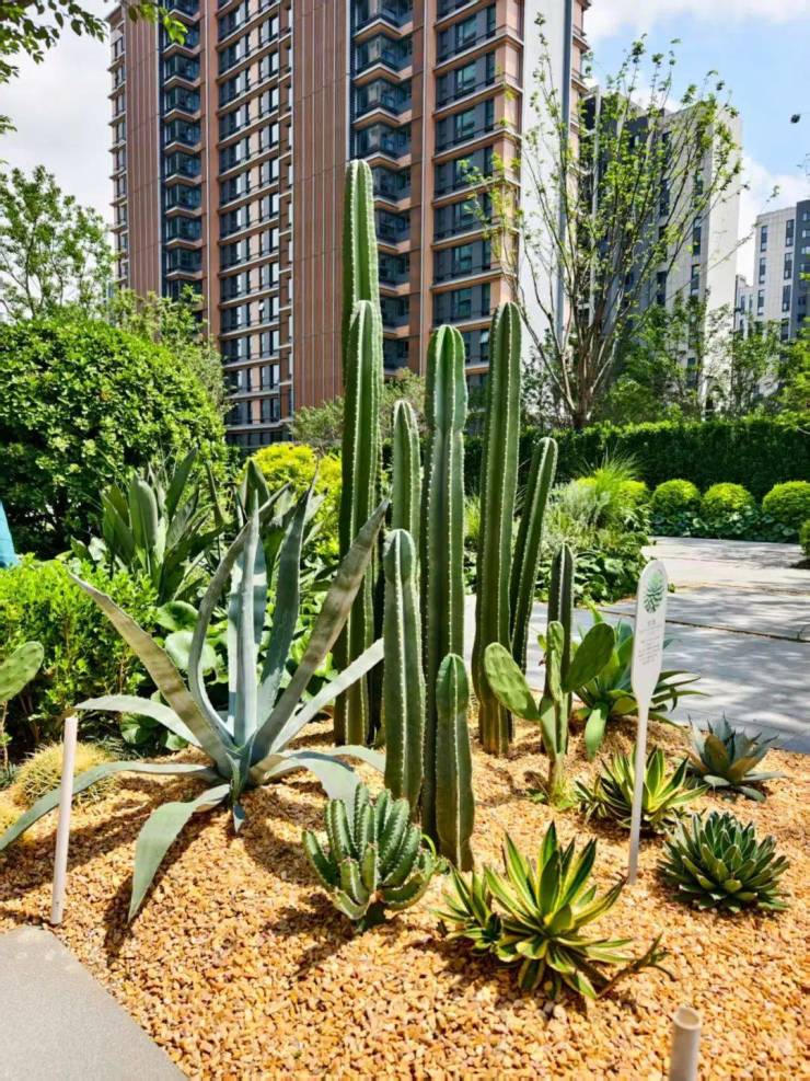 像油橄榄、龙舌兰、仙人掌量天尺,都是南京少见的品种,这些绿植营造出一种热带混合森系的独特氛围。