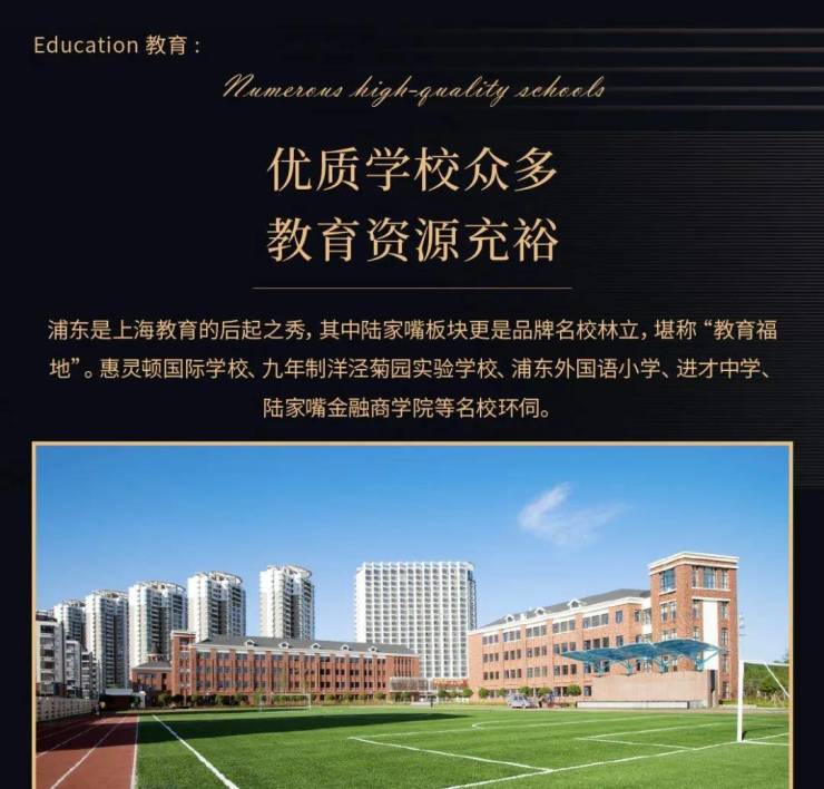 教育方面:项目附近有东昌中学华东师大附属学院,上海市洋泾菊园实验小学,上海市洋泾中学。