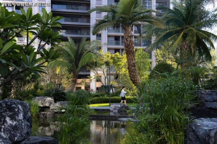 流水、椰林与置石共同营造亲近自然的浪漫度假氛围,从这里开启关于度假的想象。