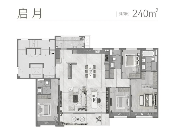 此款户型全套房设计,从功能设置到局部尺寸,体现尊贵与私密感的同时,将舒适度拉满,充分尊重不同的生活习惯。
