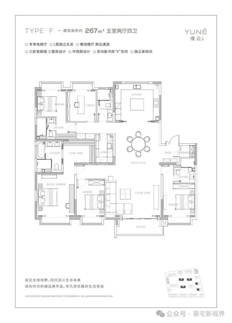纯粹大户型:主打190-330㎡的大平层,梯户比为1:1,保证了私密性和居住品质。得房率高达78%-80%,空间利用率很高。