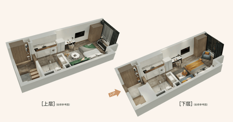 ❶建面约40-75㎡酒店式办公,首付𝟔𝟗万起,上下双套间