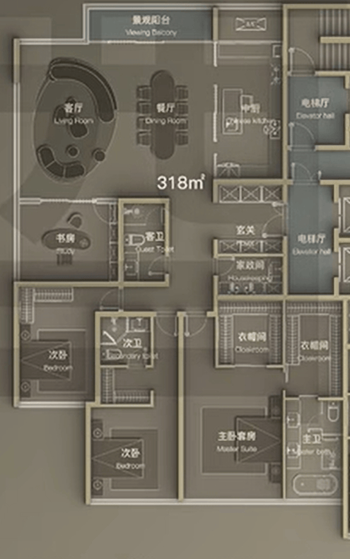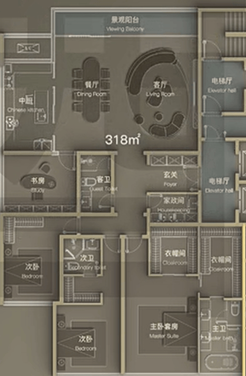 建面约318㎡四室两厅三卫