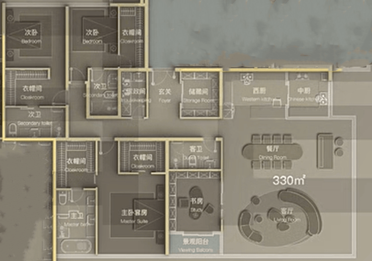 建面约330㎡四室两厅四卫