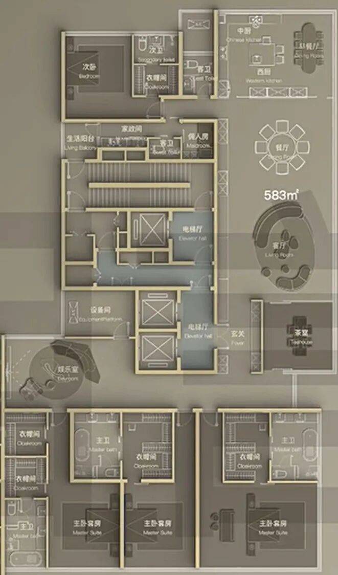 建面约583㎡五室两厅六卫