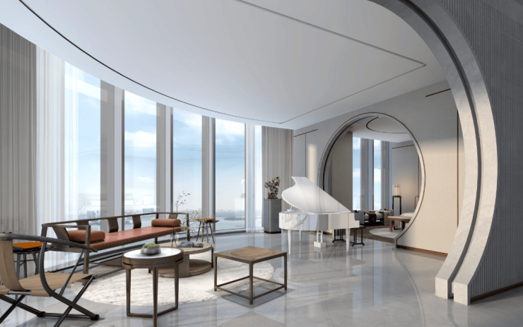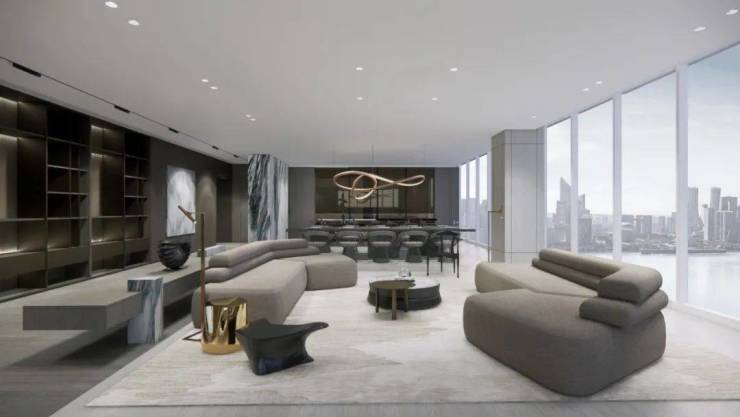 【望廷】阔厅江景宽景大宅,洞察塔尖精英心之所想,通过现代东方禅意美学的组合方式,以“东方艺术禅”为美学设计概念,将尊贵,私密,自然,精神滋养等理念贯穿所有空间,呈现出纯净高贵的意象之美。