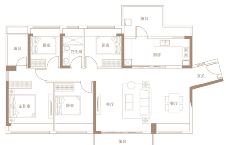 户型:4期 I 户型 138㎡ 4房2厅2卫(可改5房)