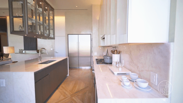 在美食区,白金沙天然石材打造的岛台,兼顾了颜值与实用性。在岛台的后面和对面,还有丰富的储物空间可以使用。这个300方空间整体非常方正,通透。南向面宽更是达到了阔绰的约16.2米,再加上全落地玻璃的设计,十分敞亮大气。顺着窗外望去,不远处的运河亚运公园更是能尽收眼底。