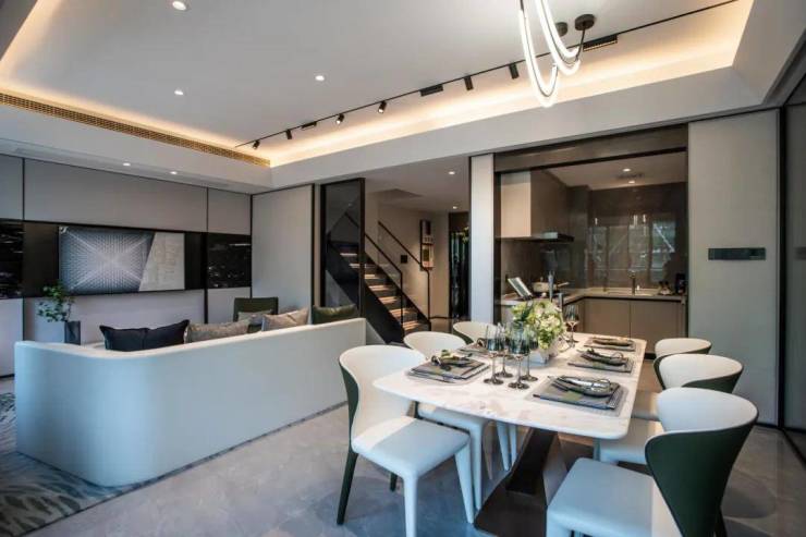 无论是星空上叠或是花园下叠,让起居空间独处一隅,开放与私密皆满分,这与“美拉德”时尚与沉稳交融的感觉不谋而合。动区空间拥有最大约7.2米餐客一体横厅,开放互动平台,拥享朗阔视野,亲人团聚、闺蜜派对都能轻松应对。