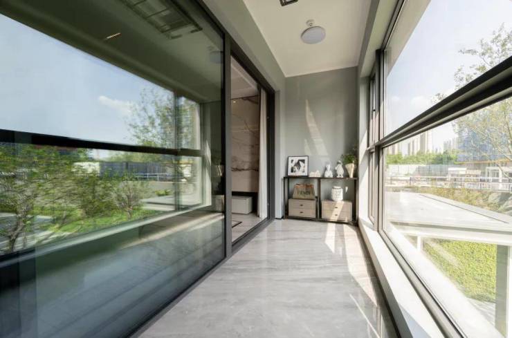 阳台进深约1.7米,使用面积将近8.5㎡,实际面积只算一半,采用大面积近乎落地的防火玻璃窗,全封闭交付,省心又省钱。