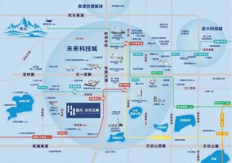 4、地铁:3号线,5号线,16号线三地铁加持,5号线老余杭站,金星站,16号线风新站都在1000米以内,不管走路还是共享单车,都可以轻松到达。机场快线可通过换乘的方式轻松到达。地铁四期的17号线规划也将路过老余杭站。