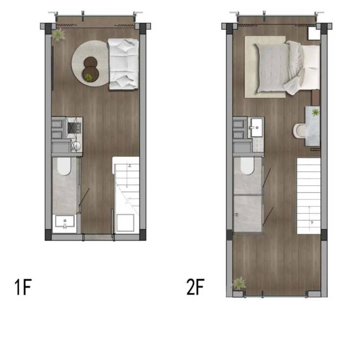项目占地约18114方(约30亩),总建筑面积约9.6万方(其中地上建筑面积约6.3万方,地下建筑面积约3.3万方),由1幢5层的自持商业和2幢回字形酒店式公寓建筑围合而成;其中一层为4.99米的社区底商,二层以上是1700多户4.79米的酒店式公寓,主要户型为30方4.79米高的双钥匙户型和33方单钥匙LOFT户型组成。