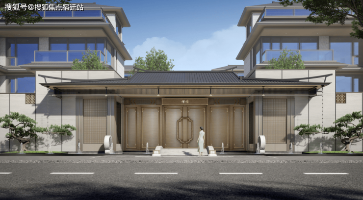 小区建筑采用了当下饱受欢迎的新中式风格,把宋式坡屋顶、挑檐的建筑风韵,用现代技艺手法表现出来,既有古典意境,也有现代之美。