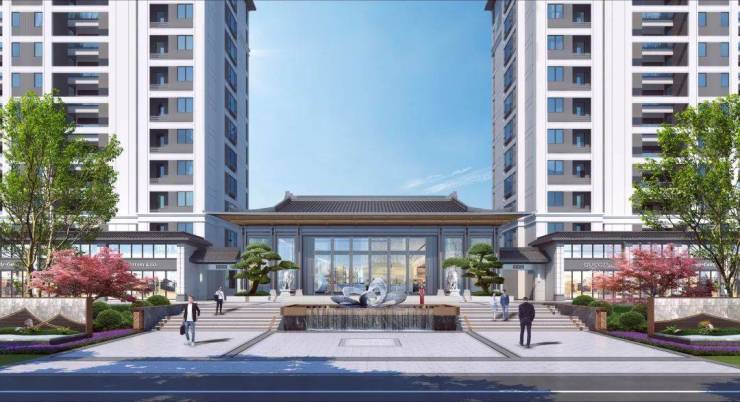 新唐风建筑美学:灰色铝板与格栅窗演绎盛唐风骨,每栋建筑退台高度达3米,形成错落天际线;