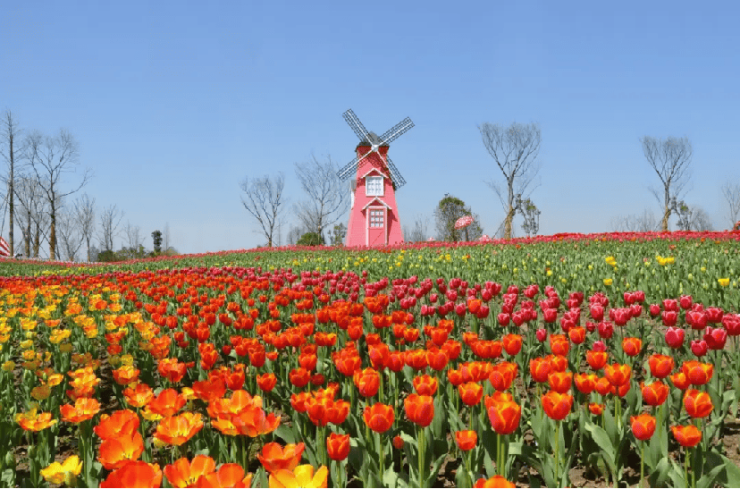 于此文脉宝地,最受平湖人向往的便是钟埭樱花公园。景区总占地约1730亩,拥有约2万余棵樱花,15万株郁金香,还有1.2万平方米的花田粉黛乱子草和1万平方米的福禄考花田,每逢花季落英缤纷,仿佛重现千年前远渡重洋、惊艳世界的盛唐樱花丽景。
