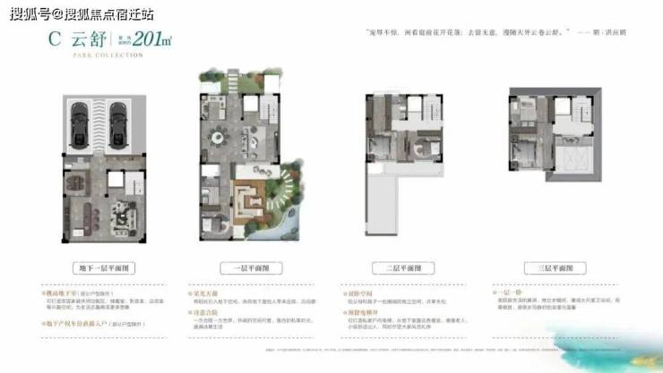 • 174㎡雅致四院:前庭后院双院落设计,6.8米横厅连接观景露台,主卧套房配备全景落地窗与独立衣帽间;