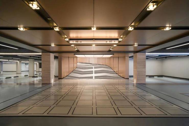 「未来客厅」以引领当下的办公空间趋势为设想,科技与美学的相互碰撞,演绎多维先锋审美的未来办公场域,塑造富有当代性与艺术性的体验空间。内部空间设计上,延续现代简洁的设计,采用大量钛空银、白色渐变玻璃和镜面材质,在深色石材的加持下,营造办公场所应有的严谨与格调。