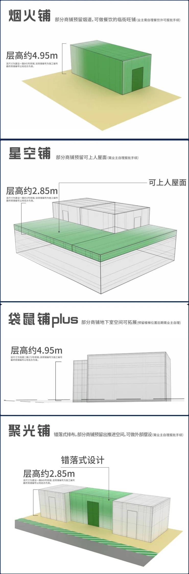 优势:多种产品类型,面积灵性、业态自由、空间利用率UP,实现商铺经营面积最大化