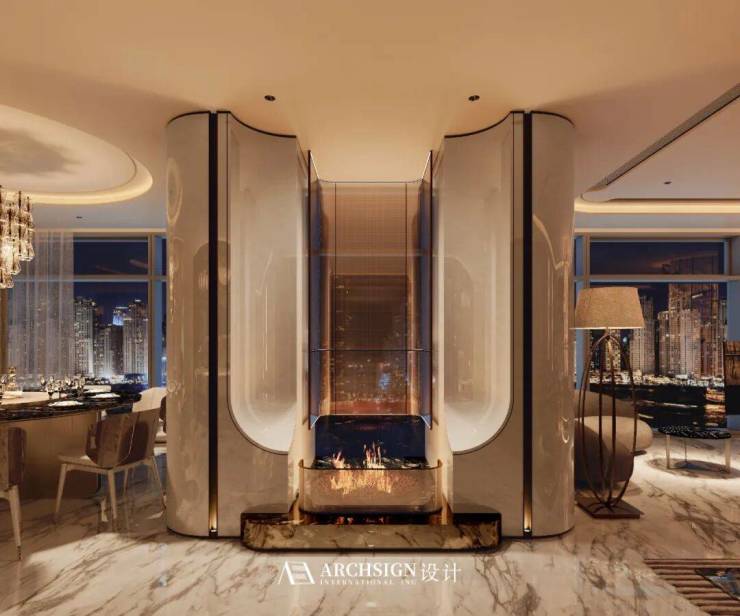 当光线有了温度、当金属有了呼吸,在理性与感性的临界点,设计利用空间原有柱型结构,【浇筑】了一座流动的动态光影花园。在直曲线条、高光尼斯和镜面折射的虚实边界,构建无需言明的默契磁场。