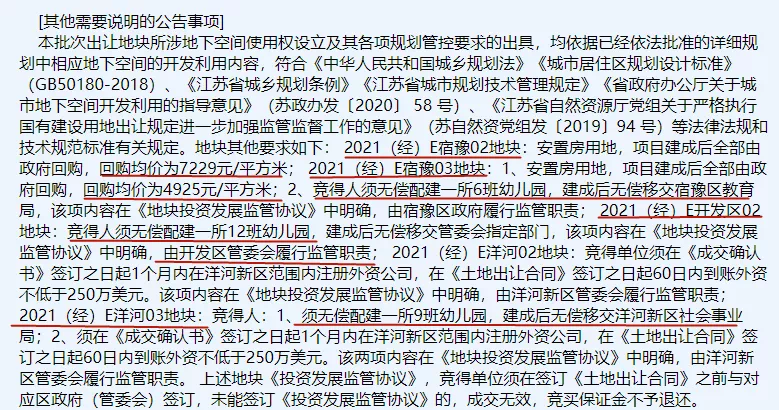 看点1所拍地要无偿配建幼儿园且无偿交移当地政府