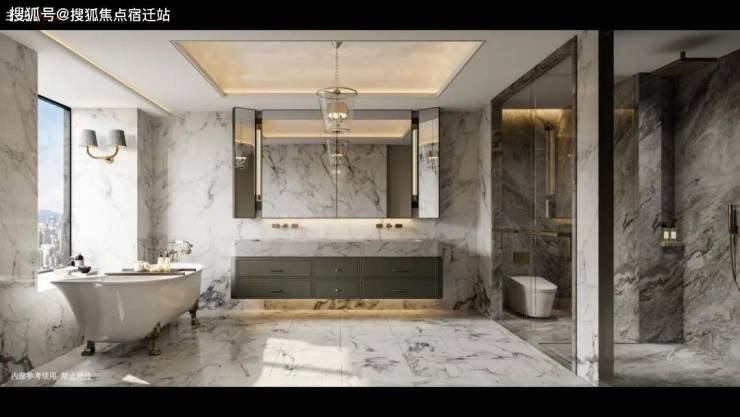 外立面大量采用弧形工艺,包括转角玻璃阳台、弧形铝板、墙面线条和大门线条等,致敬了邬达克装饰艺术派的设计美学,同时,约270度转角弧形玻璃也是基于人的需求考虑,能够让空间内部视野最大化,方便住户(部分户型)更好的捕捉璀璨夜景。(因建筑方位、周边规划等因素可能导致户外景观视野存在遮挡,效果以实际为准。)