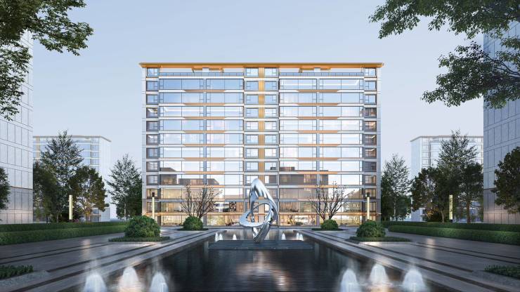 【立面赞】——金色臻境美学立面,辅以铝板材料的质感和色彩,搭配low-e玻璃,交织出现代、新锐、简约的浪漫质感,诠释永久的审美张力。