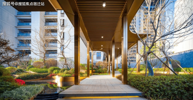 经过转角公园和星级酒店式归家大堂,一进入小区,满眼葱郁,水声潺潺,仿佛置身于大自然。廊庭、绿荫、跌水组成一幅生动且精致优雅的归家场景。