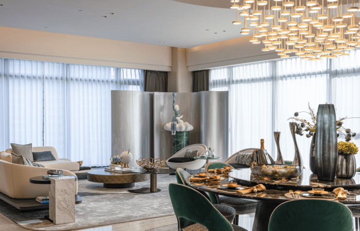 约3.8米的层高,将舒适维度立体舒展,各个公区空间的串连,形成大而开放的广阔场域,成就世界归客的精神领地。