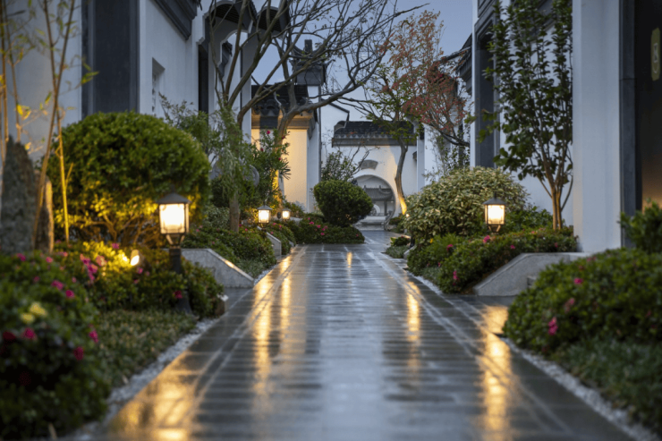 屋檐是屋顶距离人的视线最近的部位,檐口是屋檐的末端。为保留飞檐的灵动,澜院严谨推敲屋面弧度,屋面檐口采用平檐的檐口做法,工艺材质则使用铝代木,在“不可增一分,不可短一毫”的苛刻技法下,描摹中式建筑的柔美曼妙,整个屋顶也更加奢华耐久、现代精致。