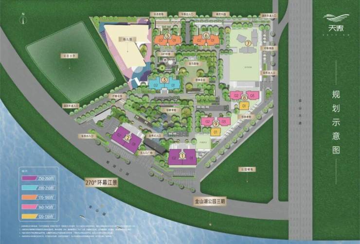 金山湖岛尖首排,玉带环腰南向湖,是稀缺资源与理学气脉的集大成者,亦是坐观城市南向发展的C位,占据城市封面地位。