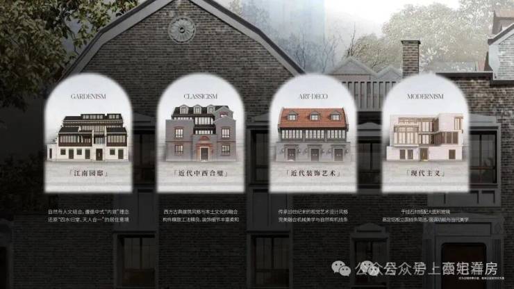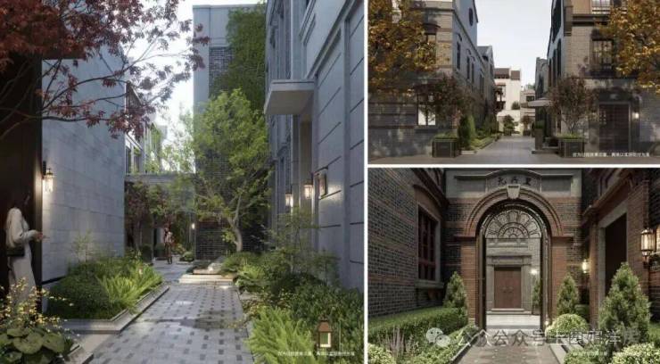 贯彻“中意西景、中正西融”景观理念,以中式花园隐居哲学核心,传承中式里弄记忆、融合西式花园情调。提取场地四种建筑和场域风格特征,营造中西风貌交叠的别墅花园景观,演绎当代海派风情里弄人居。