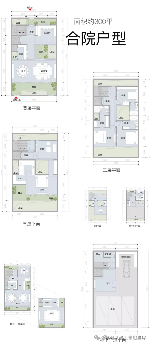 在新天地这片土地之上,以极具稀缺的“独立门牌号”为建筑和宅院赋予独特的身份铭牌。以独立多重入户方式,注重归家仪式感打造和宅院私密性。多数合院除主入口外,次入口搭配庭院,出入口连接庭院,在丰富建筑空间层次的同时打造从“公共(街道)→ 半私密(庭院)→ 完全私密(室内)” 的归家入户仪式感。