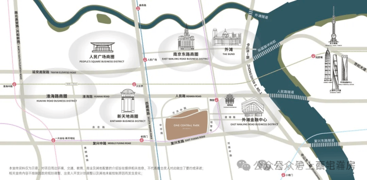 距离新天地直线距离约400米,作为蓝绿丝带规划上的关键节点,随着大新天地东进南拓战略逐步实施,通过水景、绿地和公共空间,串联新天地、豫园、外滩三大世界级商业版图。