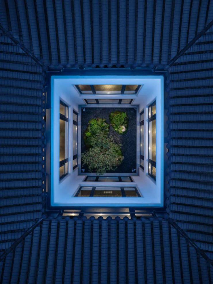 堪称神来之笔,它为这东方院落注入了自然的灵魂:每个房间,朝内永远有一片落地玻璃框出的园景。