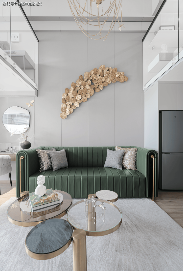 在光影所建构的空间内,将美好以不同方式留下。专为艺术青年打造的线性空间,凝练简洁。牛油果绿皮革长条沙发,哑光质地的特殊材质与透软的浅白地毯形成强烈的视觉冲击,不同材质与颜色的对视感,一如趋势青年冷酷的外表与火热的内心。和而不同,便是他们的生活态度。