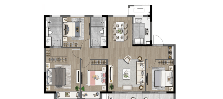 可变户型:奢阔三套房、舒适大四房个性化打造,满足不同人群的居住需求。