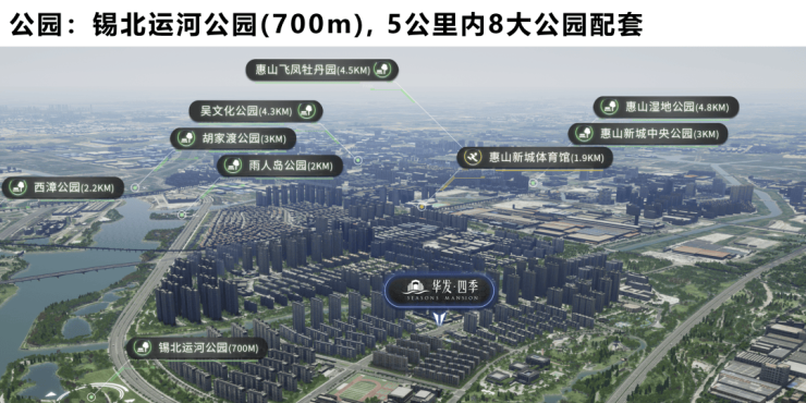 5公里内8大公园:雨人岛公园、胡家渡公园、惠山湿地公园、惠山新城中央公园、吴文化公园等作为生活后花园,是城市天然氧吧。