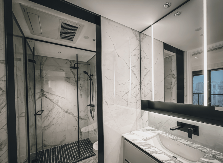 比别人更多的卫生间独立空调。卫生间干湿分离,配备了日立专用空调,让卫生间的体感更舒适。还有唯宝台盆、智能马桶、恒温花洒等,都是国际一线品牌。