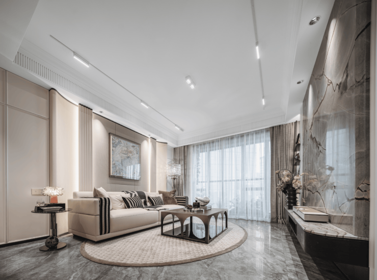 整个空间低饱和,以灰白为主色调,高级优雅。